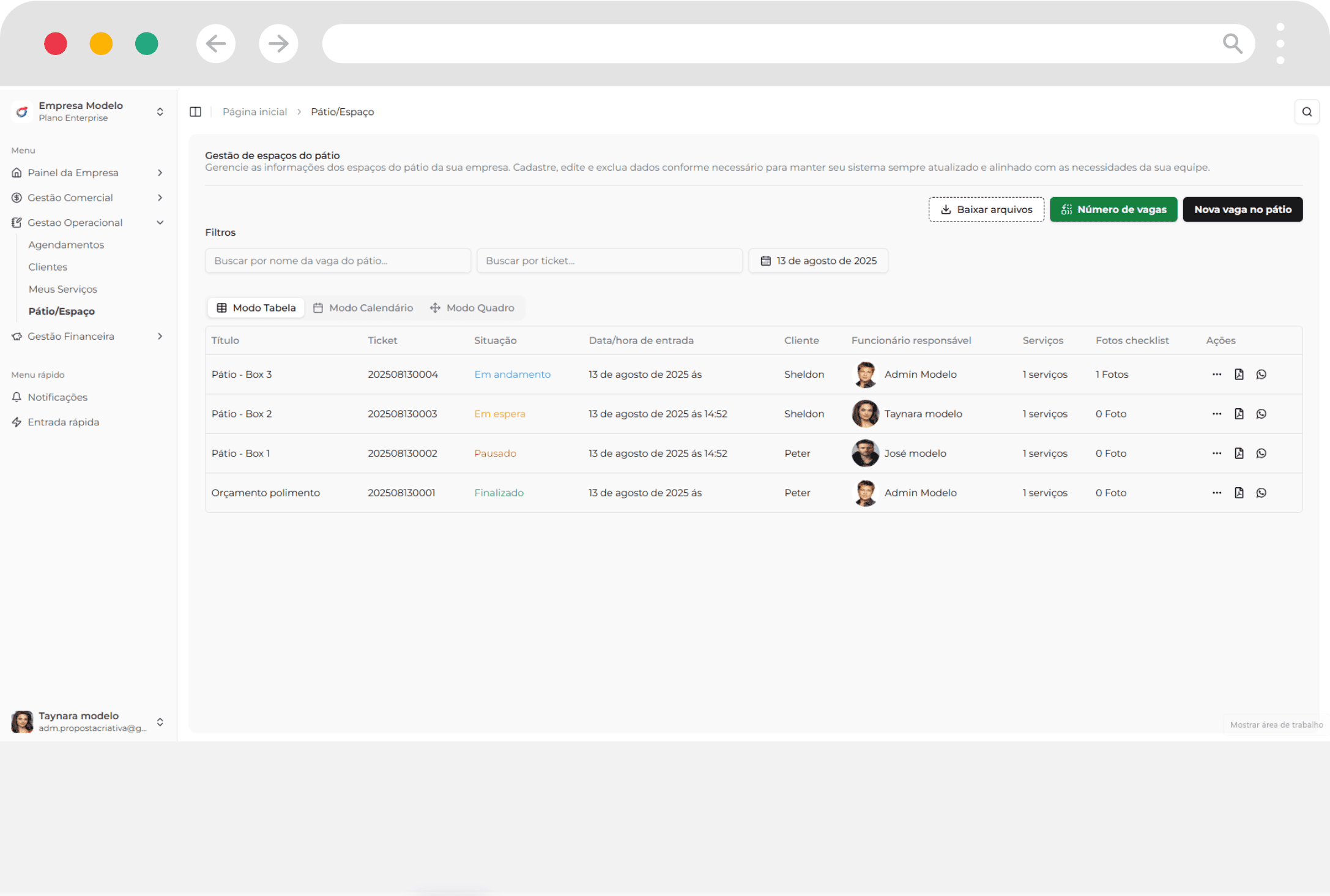 - Cadastre vagas no pátio ilimitadas no sistema