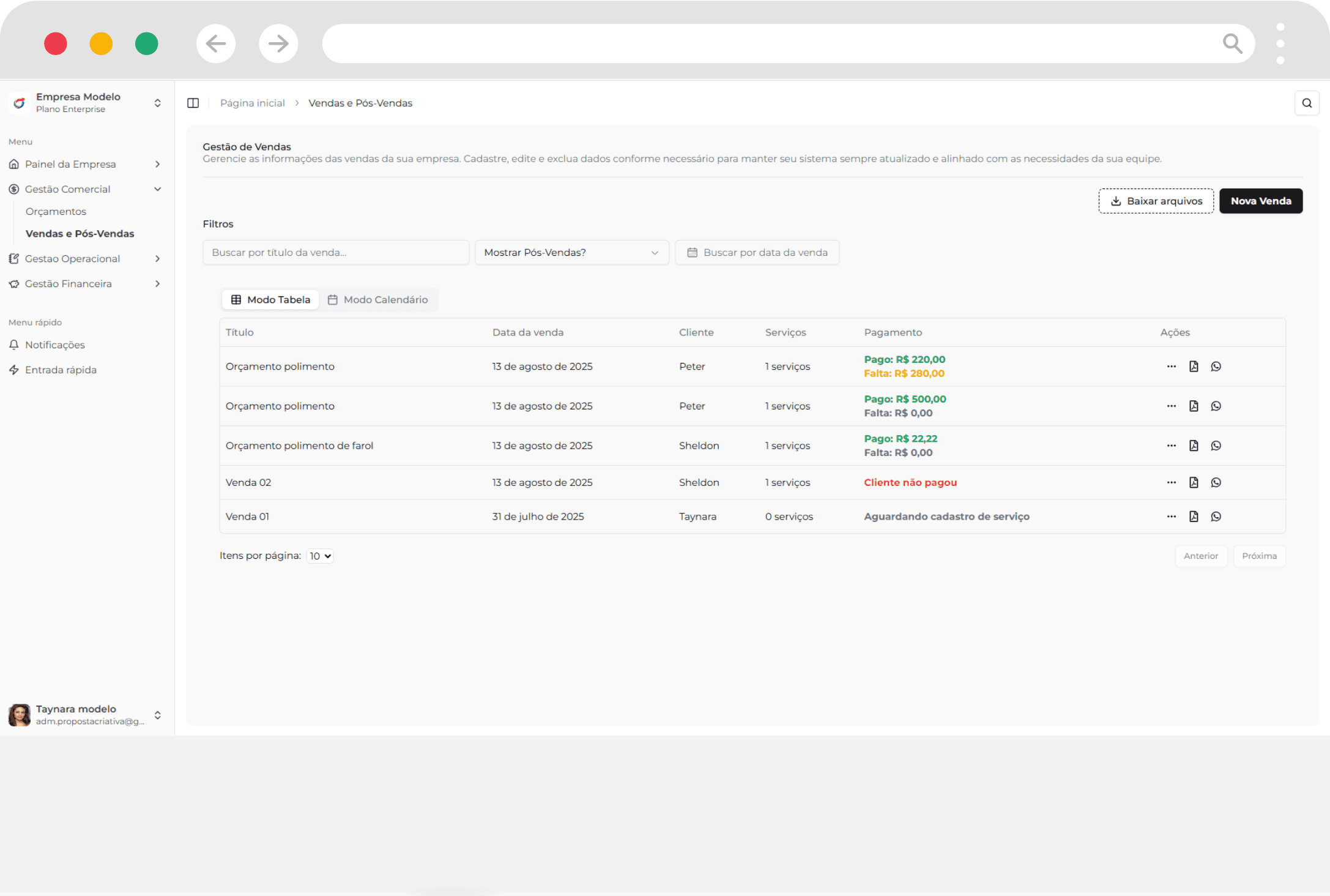 O sistema é excelente! Além de organizar nossa parte financeira, conseguimos aumentar o faturamento graças ao pós-venda mais eficiente. Ter acesso a relatórios e dados claros nos ajuda a tomar decisões certeiras e evitar gastos desnecessários.