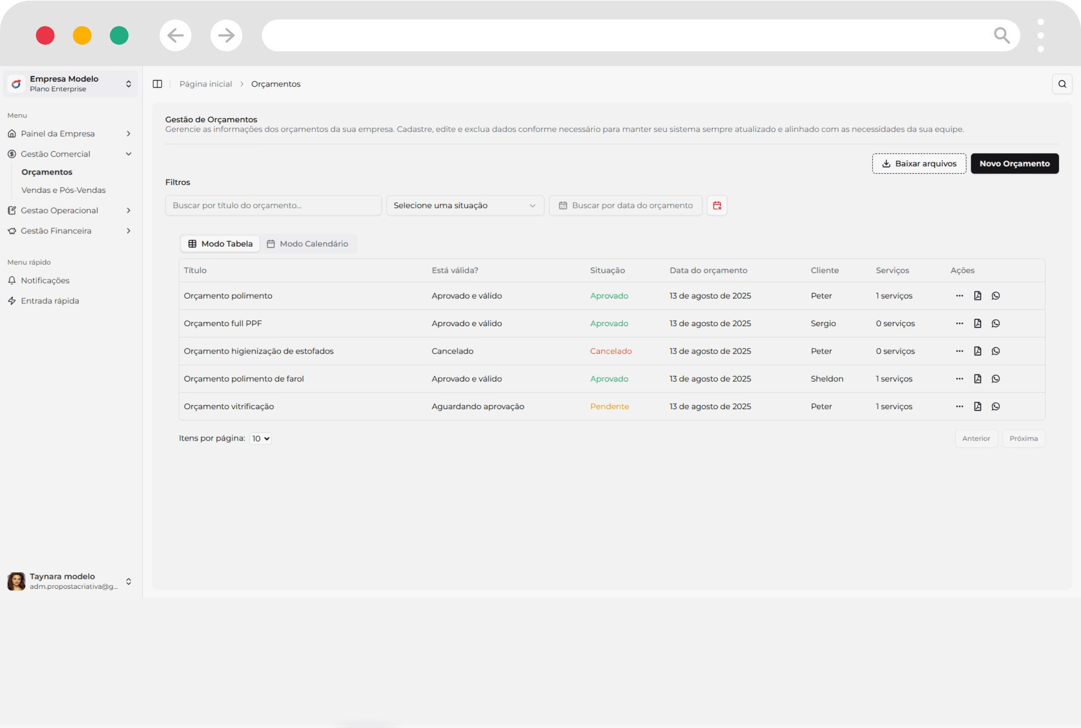 - Cadastre até 100 orçamentos no sistema por mês