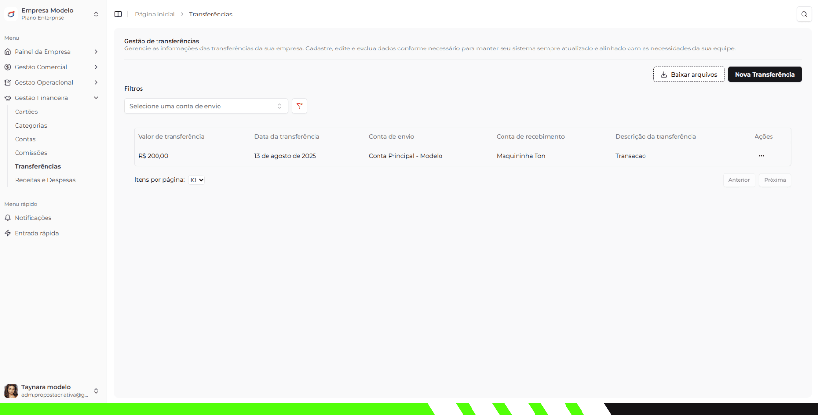 Transfira saldos entre suas contas cadastradas no sistema, mantendo o controle total e o registro de todas as movimentações.